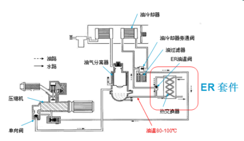 LERP(T)是一款外置于噴油螺桿壓縮機(jī)的熱能回收裝置,以水為媒介回收空氣壓縮機(jī)壓縮過程中產(chǎn)生的廢熱。利用廢熱來提升水溫,滿足用戶的熱水需求,以達(dá)節(jié)能目的。